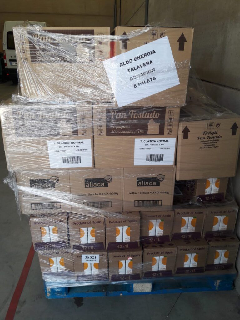 En el Banco Solidario que la Fundacion Mensajeros de la Paz tiene en la ciudad de Toledo, hemos recibido la donación de la entidad Aldro Energía de 8 palets de alimentos no perecederos. Gracias a entidades como Aldro Energía somos capaces de ayudar cada vez a más familias en situación de grave vulnerabilidad.