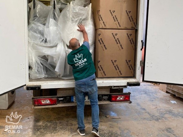 • Se ha colaborado con Frozen (Asociación de Empresarios del Congelado de España), para traer un camión de congelados desde diferentes puntos y empresas, desde Madrid al Puerto de Valencia, donde esta asociación puso un container frigorífico para ayudar a las ongs que estábamos preparando menús calientes.