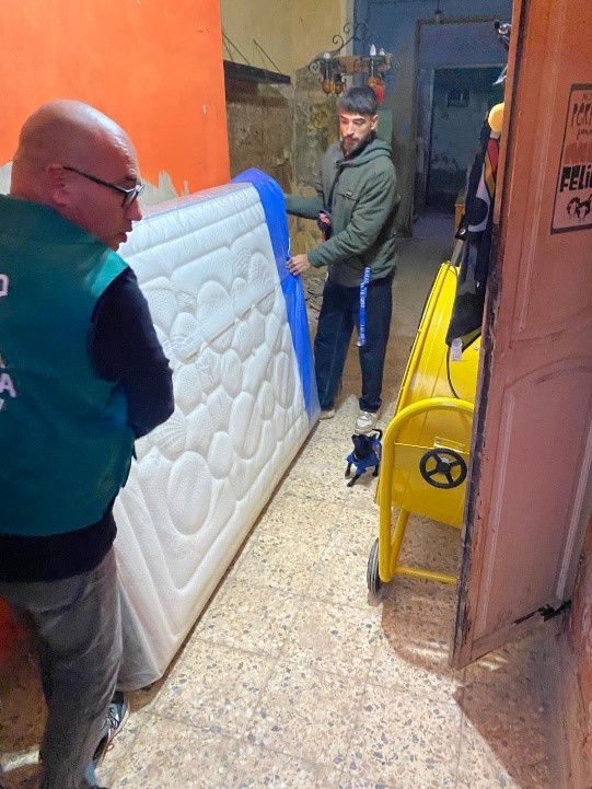 • Instalación de una carpa de ayuda, en cada una de tres las localidades (Paiporta, Catarroja y Sedavi), desde la cual se distribuyen alimentos, productos de higiene, ropa, calzado y agua a las personas afectadas, brindando un punto seguro y accesible para recibir ayuda.