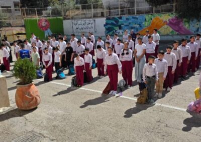 Hoy ha comenzado el nuevo curso en nuestra escuela de Marka, que la Fundación Mensajeros de la Paz tiene en la ciudad de Aman en Jordania, y que cuenta actualmente con 250 niñ@s refugiados que asisten a clases durante la semana. Se les ha hecho entrega de su uniforme escolar, que han confeccionado sus propias madres en nuestro taller de costura. L@s niñ@s reciben una comida caliente por asistir a la escuela. Sus familias reciben vales de comida para ayudarles a comprar alimentos para todos los miembros de la familia.