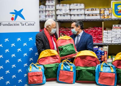 El director territorial de la DT Madrid Metropolitana de CaixaBank, D.Rafael Herrador Martínez, estuvo en la sede del Banco Solidario visitando nuestras instalaciones y nos hizo entrega de las 570 mochilas para que los niños, usuarios de nuestros centros, puedan comenzar el curso con su mochila nueva y demás material escolar.