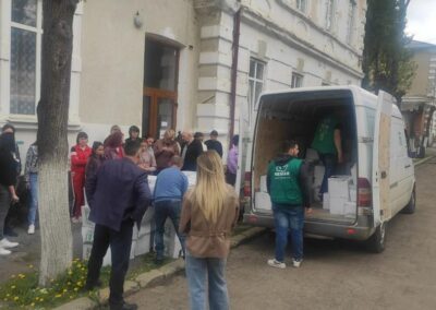 1700 menús elaborados en la ciudad de Chernivtsi , también se desplaza a otras ciudades de Ucrania, donde hacemos entrega de cestas de alimentos para muchas familias.