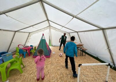 Instalación de una carpa donada por @fundacionce en En Rzeszów, ciudad de Ucrania, cerca de la frontera con Polonia, donde Fundación Mensajeros de la Paz y la @OngRemar han alquilado un hotel, donde tenemos alojadas a familias de desplazados internos, que van en busca de lugares tranquilos, que no están siendo bombardeados. Además de su alojamiento y manutención, se llevan a cabo con ellos actividades lúdicas para hacerles olvidar el horror que están viviendo, sobre todo, con los más pequeños.