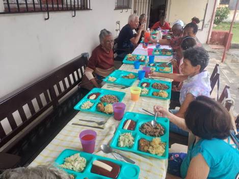 Enclavado en la parroquia de San Francisco Javier, Mensajeros de la Paz mantiene también el comedor de Marianao, que cuenta con 70 comensales de promedio, que acuden diariamente, cinco días a la semana. Se elaboran 70 raciones de comida diarias, que proporcionan a l@s ancian@s una alimentación adecuada.