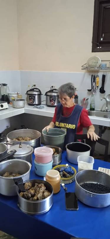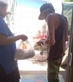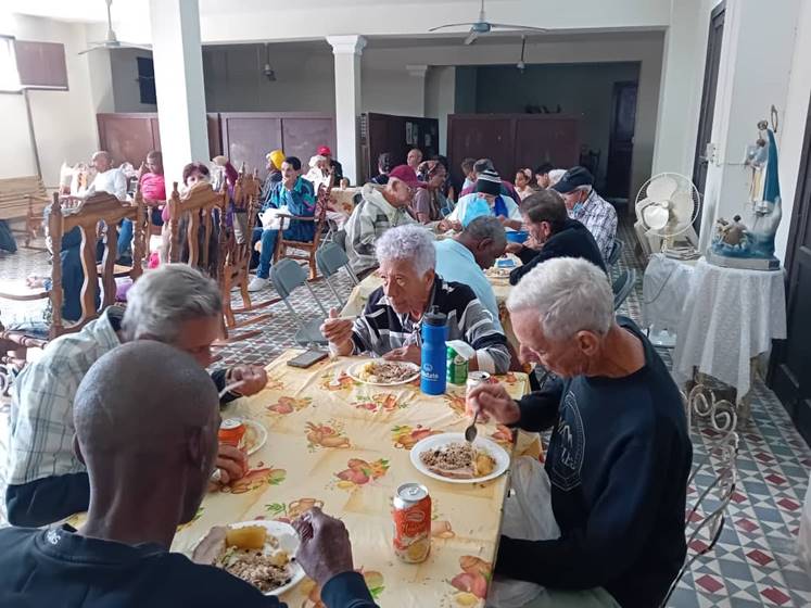 Además, desde el comedor de Marianao se preparan 10 bolsas de alimentos para ancian@s en grave riesgo de vulnerabilidad, que reciben este servicio porque están enferm@s y encamad@s. Este proyecto extra funciona desde el año 2022. También se preparan en el comedor de Mensajeros de Marianao 10 desayunos y 10 almuerzos para otr@s ancian@s vulnerables de la parroquia Virgen de Loreto, ubicada en una zona muy pobre, donde los más mayores carecen de los necesarios alimentos.