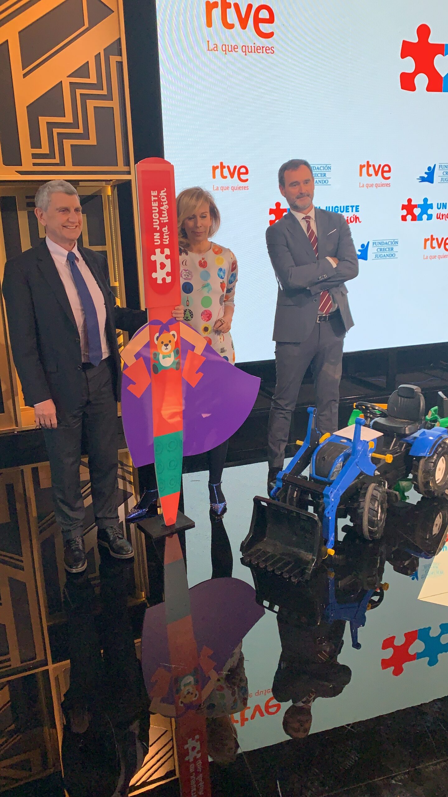 Ayer tuvo lugar la presentación de la campaña @UnJugueteUnaIlusion con la presencia del Presidente de RTVE, José Manuel Pérez Tornero y el Presidente de la Fundación Crecer Jugando, José Antonio Pastor. Esta es la XXII edición de esta campaña con el objetivo de enviar 300.000 juguetes a niños y niñas en situación de vulnerabilidad en España, America Latina y Africa para defender el juego como derecho fundamental de la infancia. En el acto estuvieron presentes además los colaboradores de esta iniciativa solidaria y los representantes de las ONGs beneficiarias. En estos 20 años se han enviado más de 1 millones de juguetes a niños y se han dotado ludotecas en colegios y hospitales. La Fundación Mensajeros de la Paz siempre ha sido una entidad beneficaria de esta iniciativa solidaria desde sus inicios y, este año, podremos llevar juguetes a nuestros proyectos en Honduras, Jordania, Benin, Perú y España. Nuestro agradecimiento a @fundacioncrecerjugando