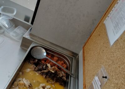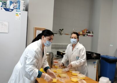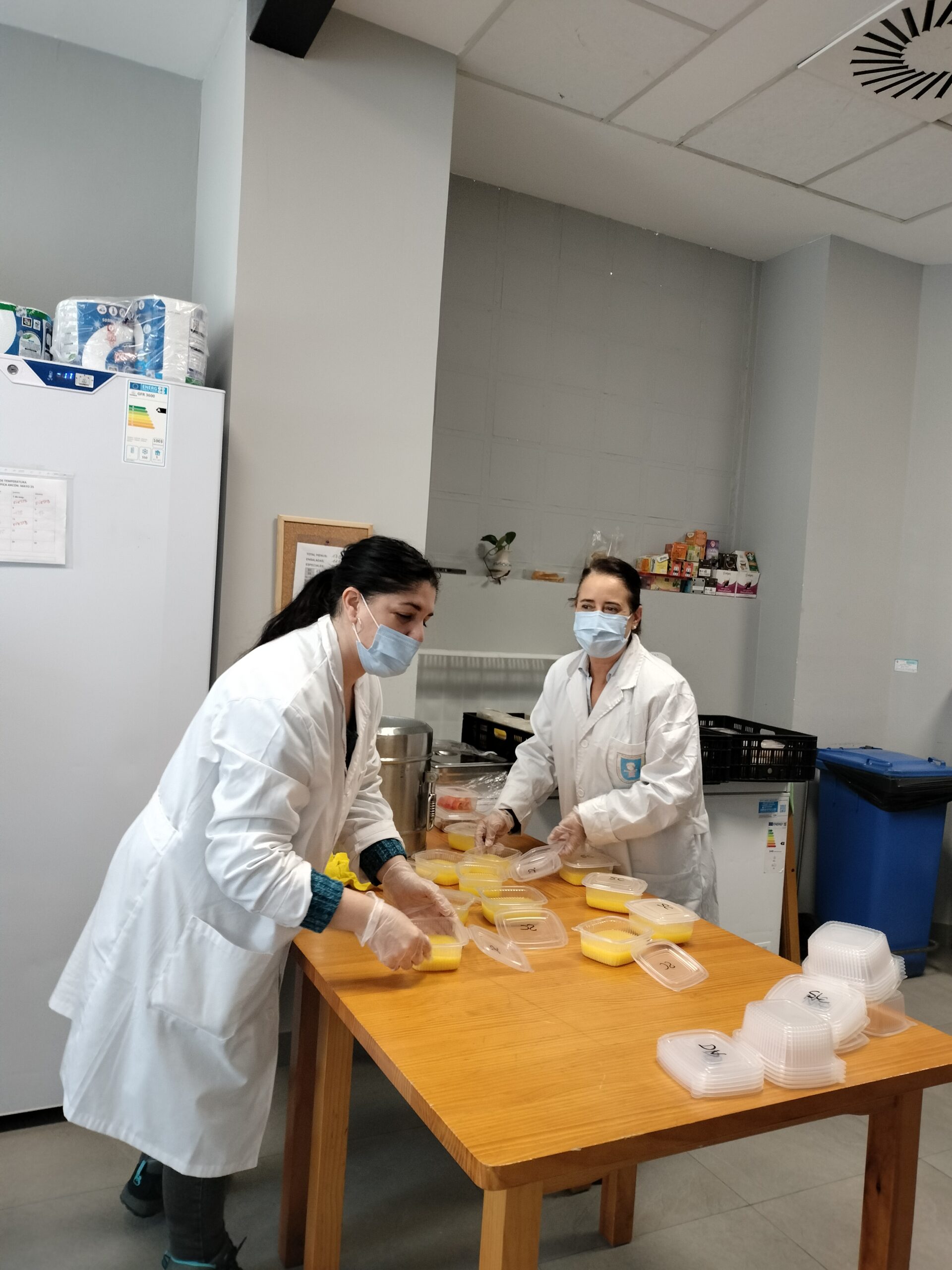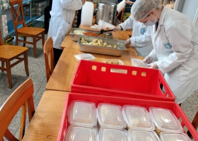 Nuestros usuarios felices de poder celebrar la festividad del Día de San Isidro con este menú especial del cocido madrileño. En el Centro Familiar Mensajeros de la Paz Villaverde se reparten cada día 170 menús, con su primer plato, segundo y postre.