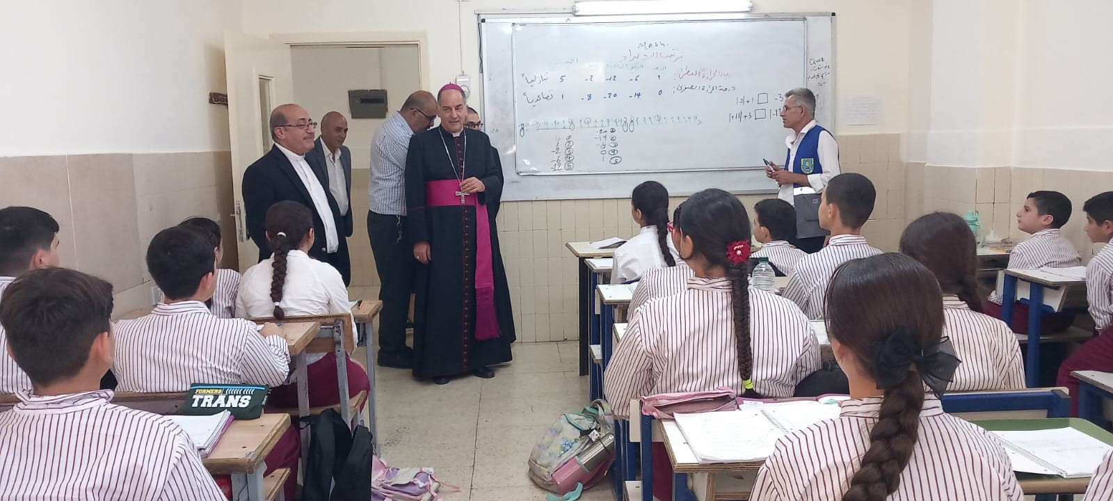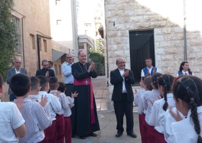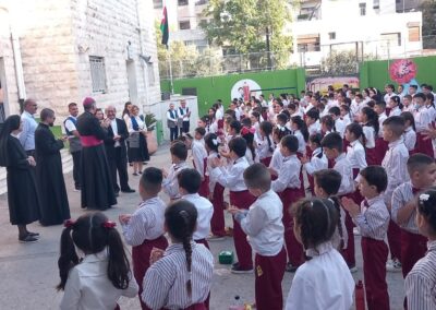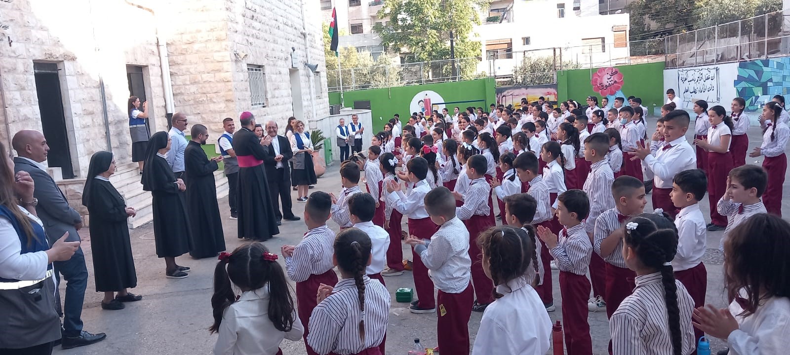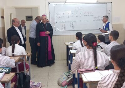 Hoy a visitado nuestra escuela de Marka, que la Fundación Mensajeros de la Paz tiene en la ciudad de Aman en Jordania, el Nuncio de Su Santidad y, que cuenta actualmente con 250 niñ@s refugiados que asisten a clases durante la semana. Se les ha hecho entrega de su uniforme escolar al inicio de la escuela y, se les ofrece además, almuerzo y merienda. A sus familias se les ayuda con vales de comida para la compra de alimentos para todos los miembros de la familia.