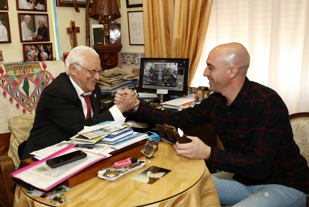 Hoy hemos recibido la visita en la sede de Mensajeros de la Paz, de Luis Rubiales, junto a los responsables del departamento de prensa y responsabilidad social corporativa. Primero hubo un breve encuentro con nuestro Presidente, el Padre Angel García, quien le hizo entrega del símbolo de nuestra labor “el banco solidario”. Después estuvo visitando el comedor donde se ofrece desayuno a las personas sin hogar, el Centro de Día de Atención a Enfermos de Alzheimer, el Ropero Solidario y el Banco Solidario.